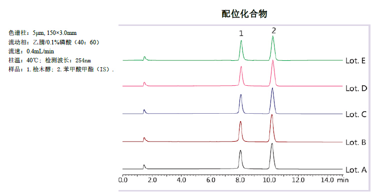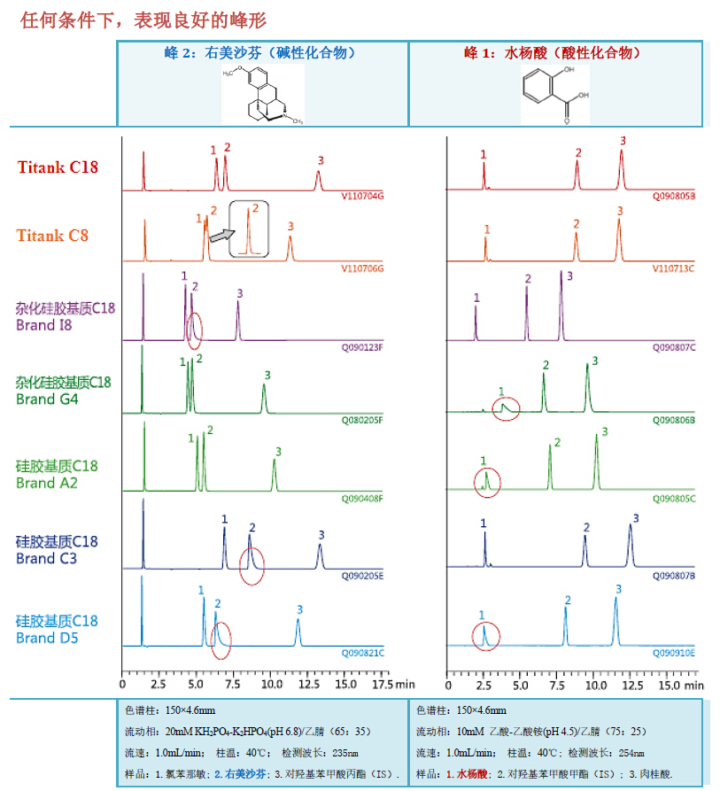 上圖顯示,對易于引起吸附、拖尾及易產生再現性問題的堿性化合物和配位化合物,Titank 系列能獲得穩定的重現性。