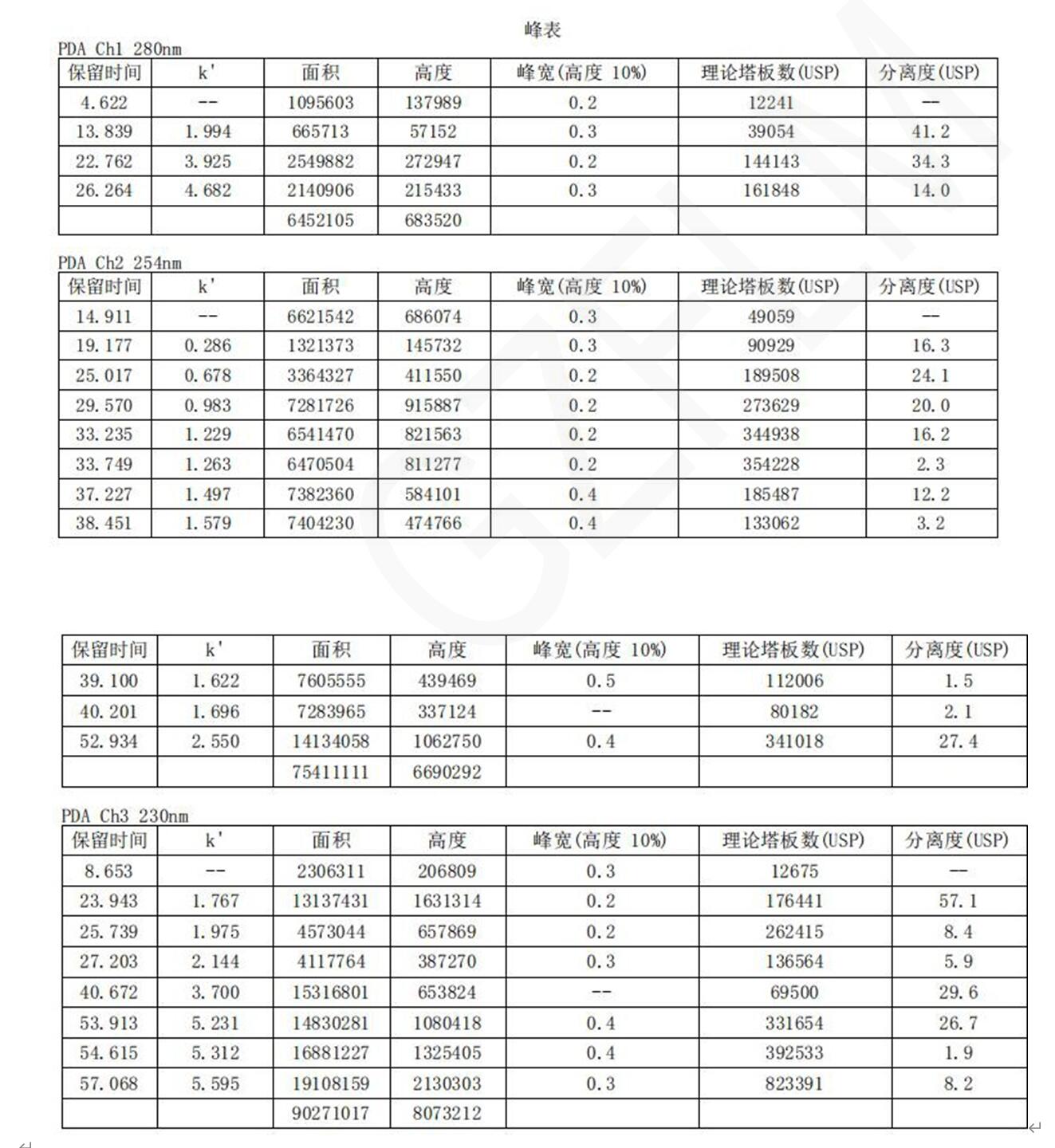 檢測波長:280 nm;254 nm;230 nm