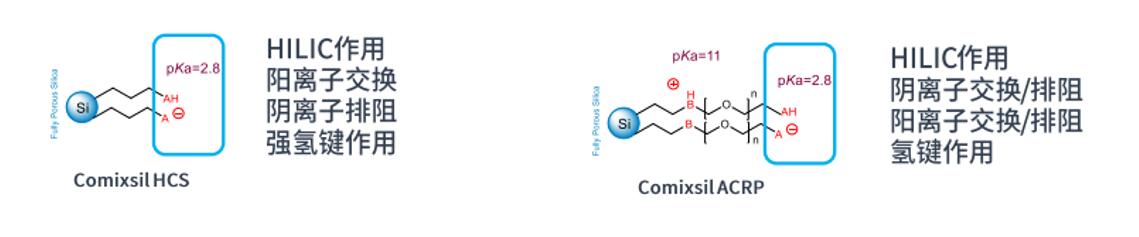 應用原理:利用陰陽離子交換或者排斥做保留,然后通過分析物的親水差異把它們洗脫下來。