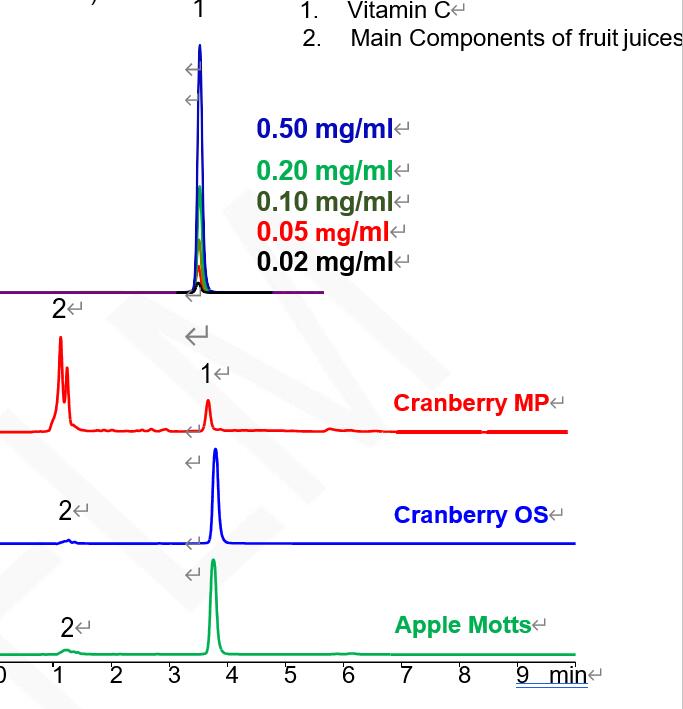 果汁中的維生素C在Comixsil HAX混合型柱上的HPLC定量分析