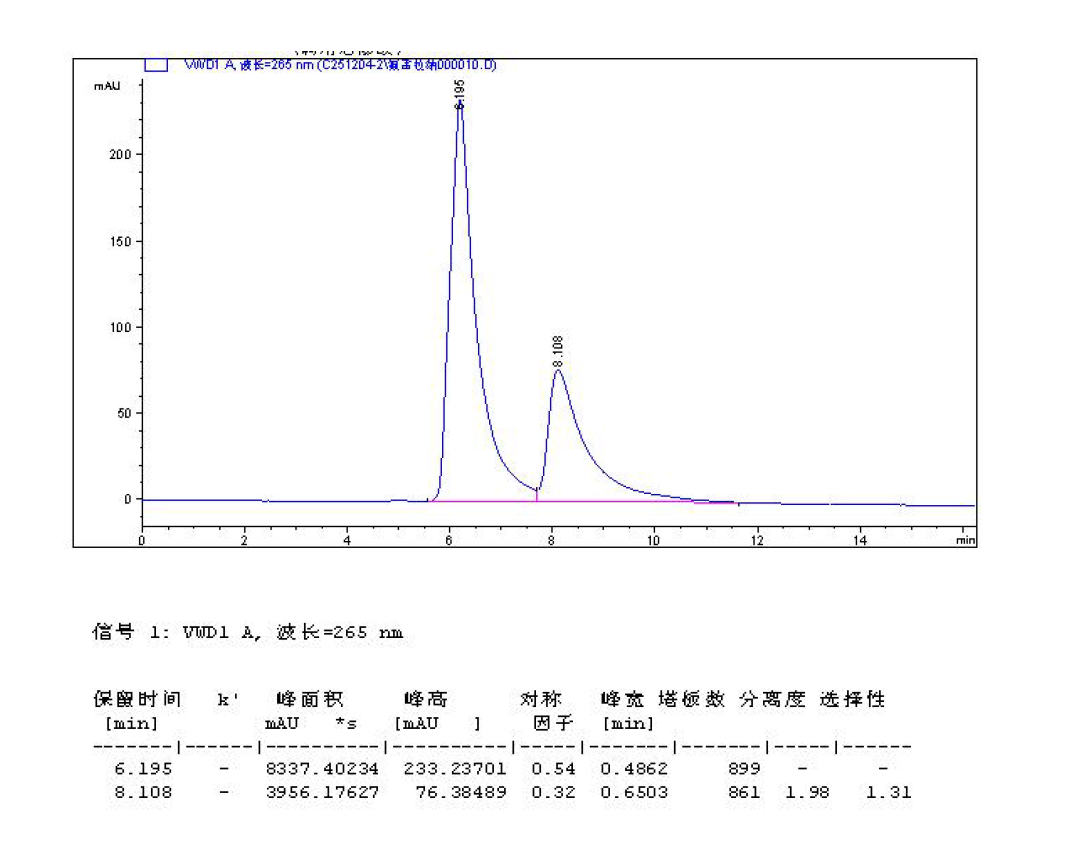 色譜柱:Chiral ND(2) 5μ 250*4.6mm( 貨號(hào):FMG-AC5-A01-NFC) 流動(dòng)相及色譜條件:咨詢