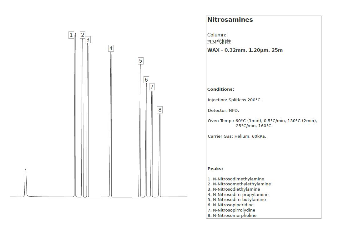 Nitrosamines(基因毒性和元素雜質相關應用圖譜)菲羅門氣相柱