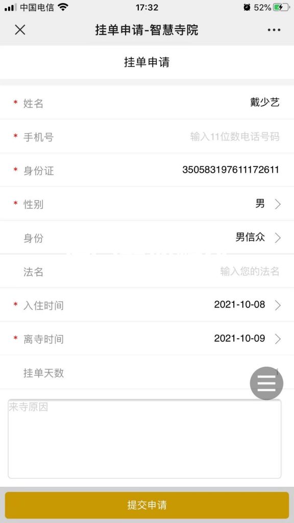 行腳師父可以通過(guò)網(wǎng)上查看寺院智慧寺院系統(tǒng),在寺院的功能板塊點(diǎn)擊掛單申請(qǐng)功能系統(tǒng)版塊,提前查看寺院的住宿情況,這樣大大為行腳師父知悉寺是否住宿額滿提供了方便之處。